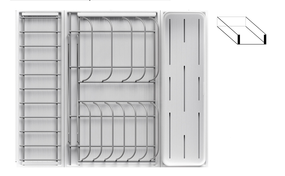 Модель — 1 большой модуль для посуды + 1 малый модуль с решеткой + модуль для столовых приборов