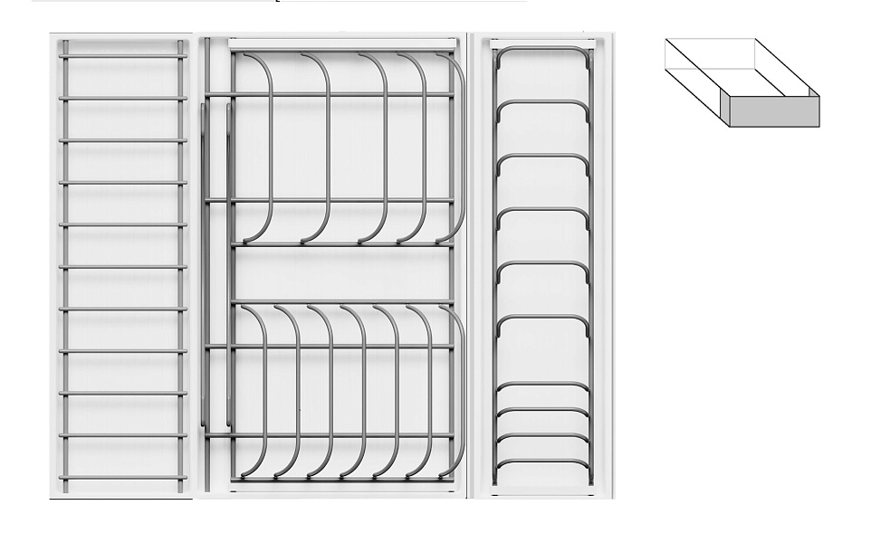 - 1 большой модуль для посуды + 1 большой модуль с решеткой + модуль для столовых приборов