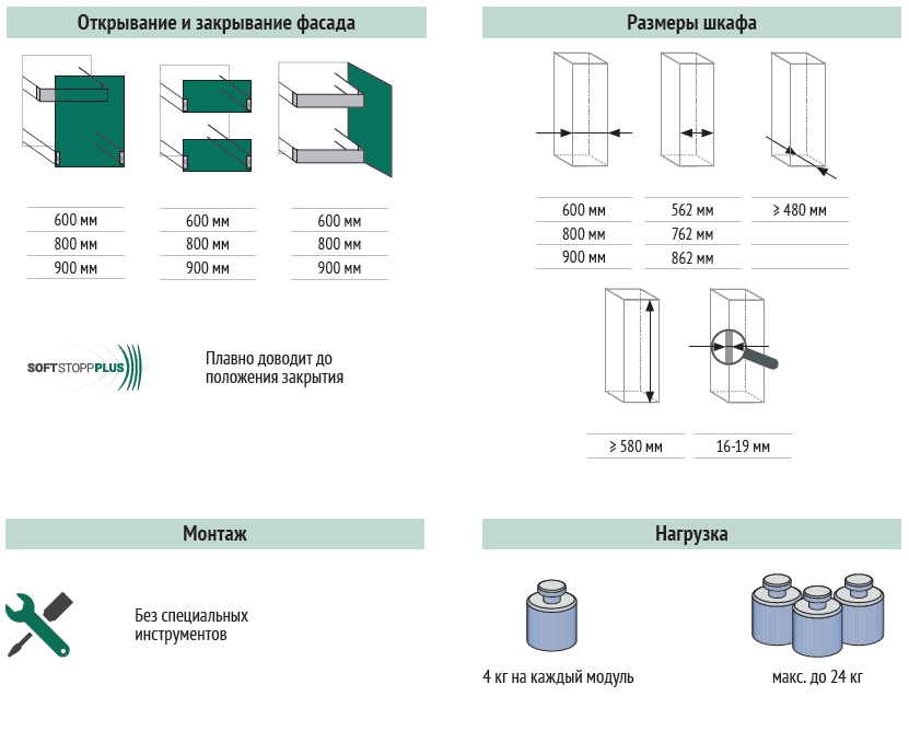 - 3 больших модуля для посуды