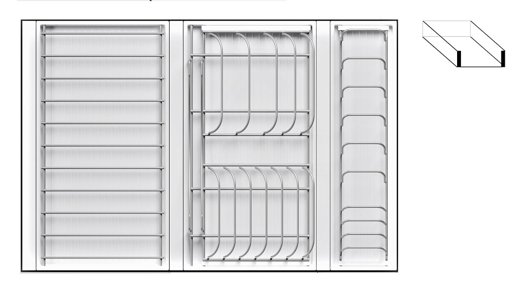 - 1 большой модуль для посуды + 1 большой модуль с решеткой + модуль для столовых приборов