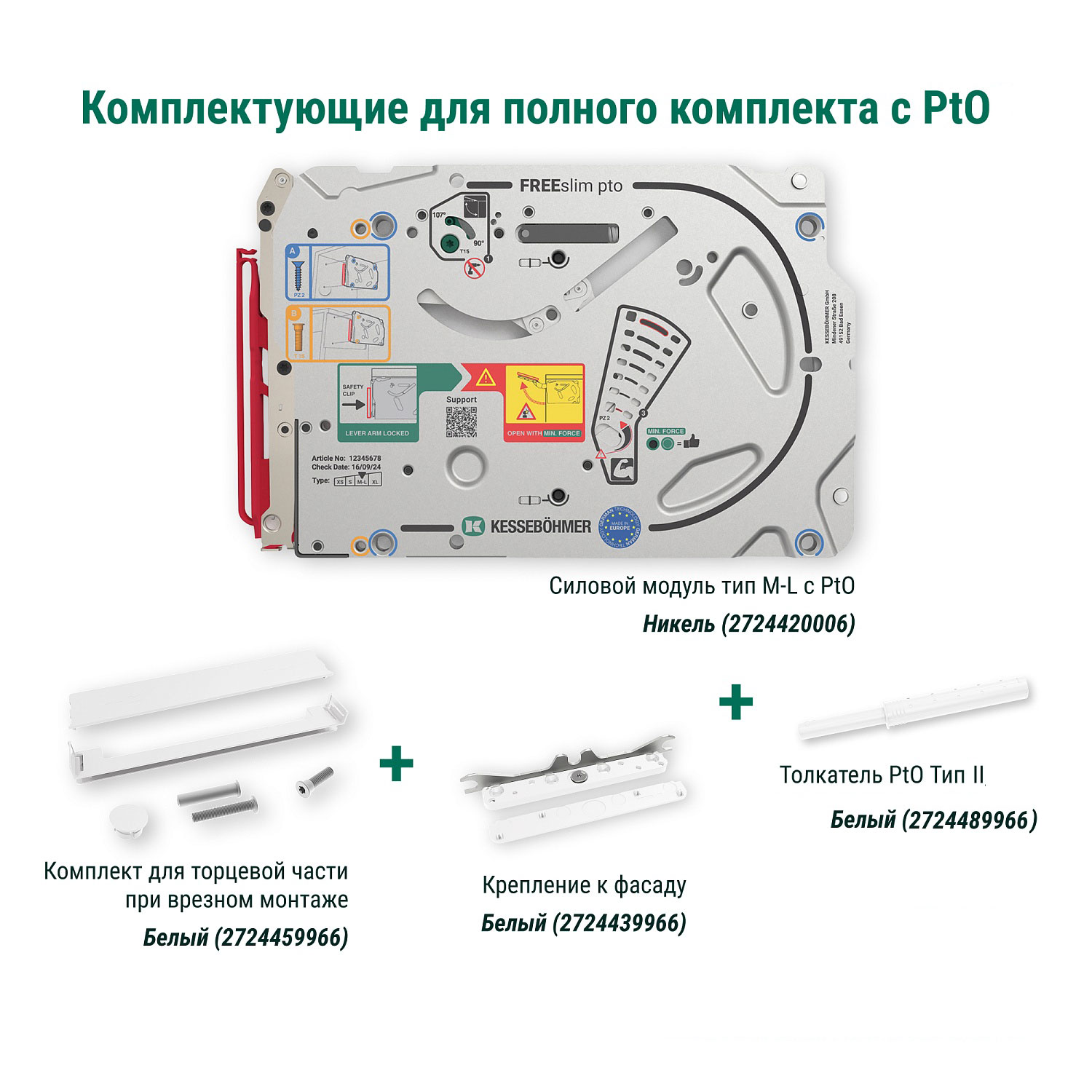 Силовой модуль тип M-L Pto левый и правый, к подъемнику ФриСлим Флап, H 225-650, 2 шт + 4 установочных штифта, 8 шурупов 4х20 мм, цвет НИКЕЛЬ (2724420006)