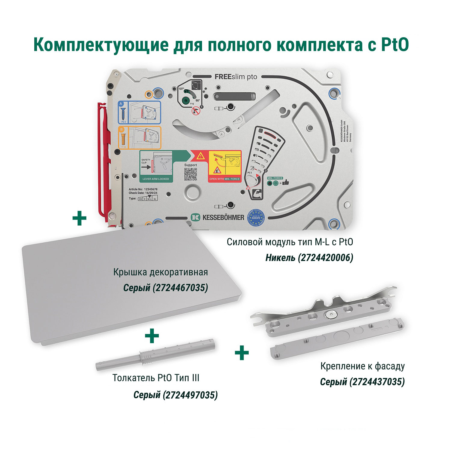 Силовой модуль тип M-L Pto левый и правый, к подъемнику ФриСлим Флап, H 225-650, 2 шт + 4 установочных штифта, 8 шурупов 4х20 мм, цвет НИКЕЛЬ (2724420006)