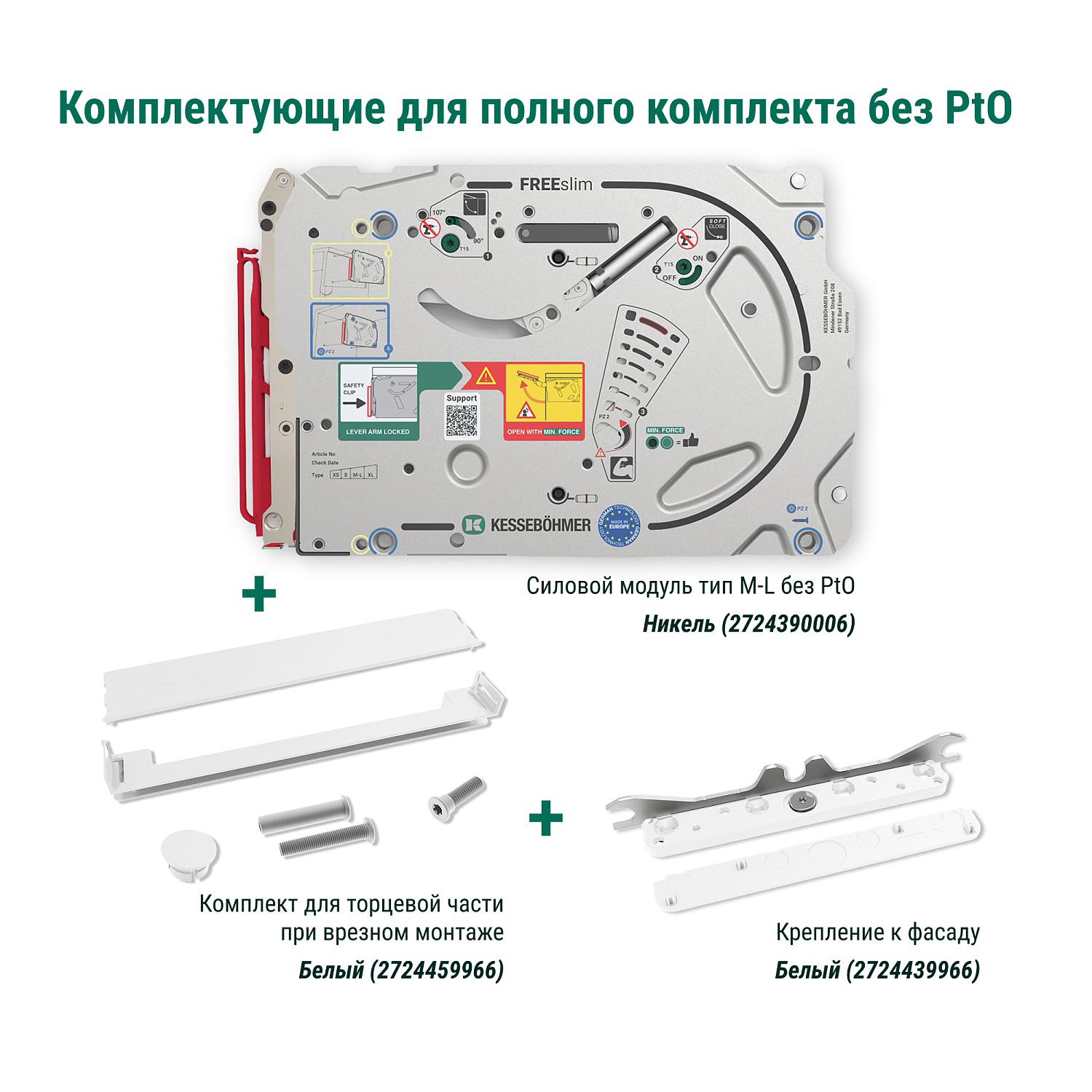 Силовой модуль тип M-L левый и правый, к подъемнику ФриСлим Флап, H 225-650, 2 шт + 4 установочных штифта, 8 шурупов 4х20 мм, цвет НИКЕЛЬ (2724390006)