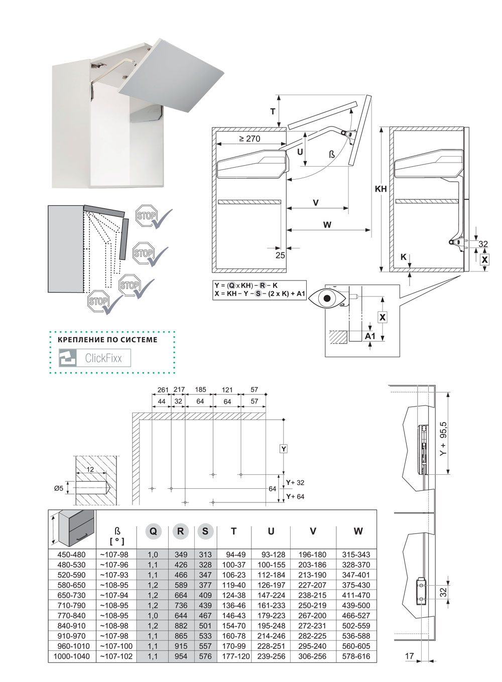 Комплект состоит из 2 подъемных механизмов (правый и левый), 2 креплений к фасаду и трафарет