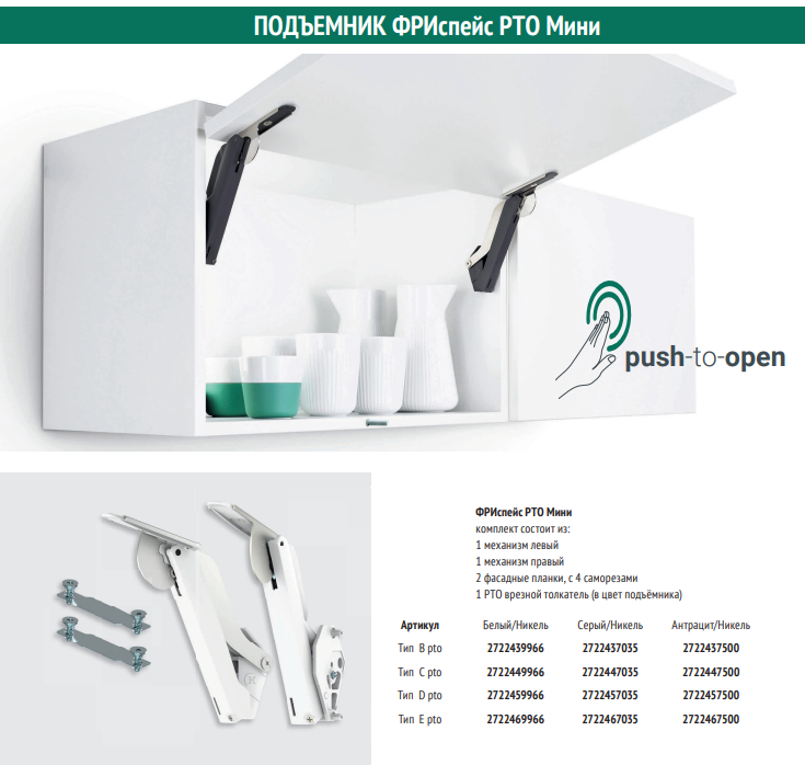 Подъемник ФриСпейс PtO, тип D, Комплект из 2 шт (правый и левый) и 2 крепления к фасаду, цвет СЕРЫЙ/никель (2722457035)