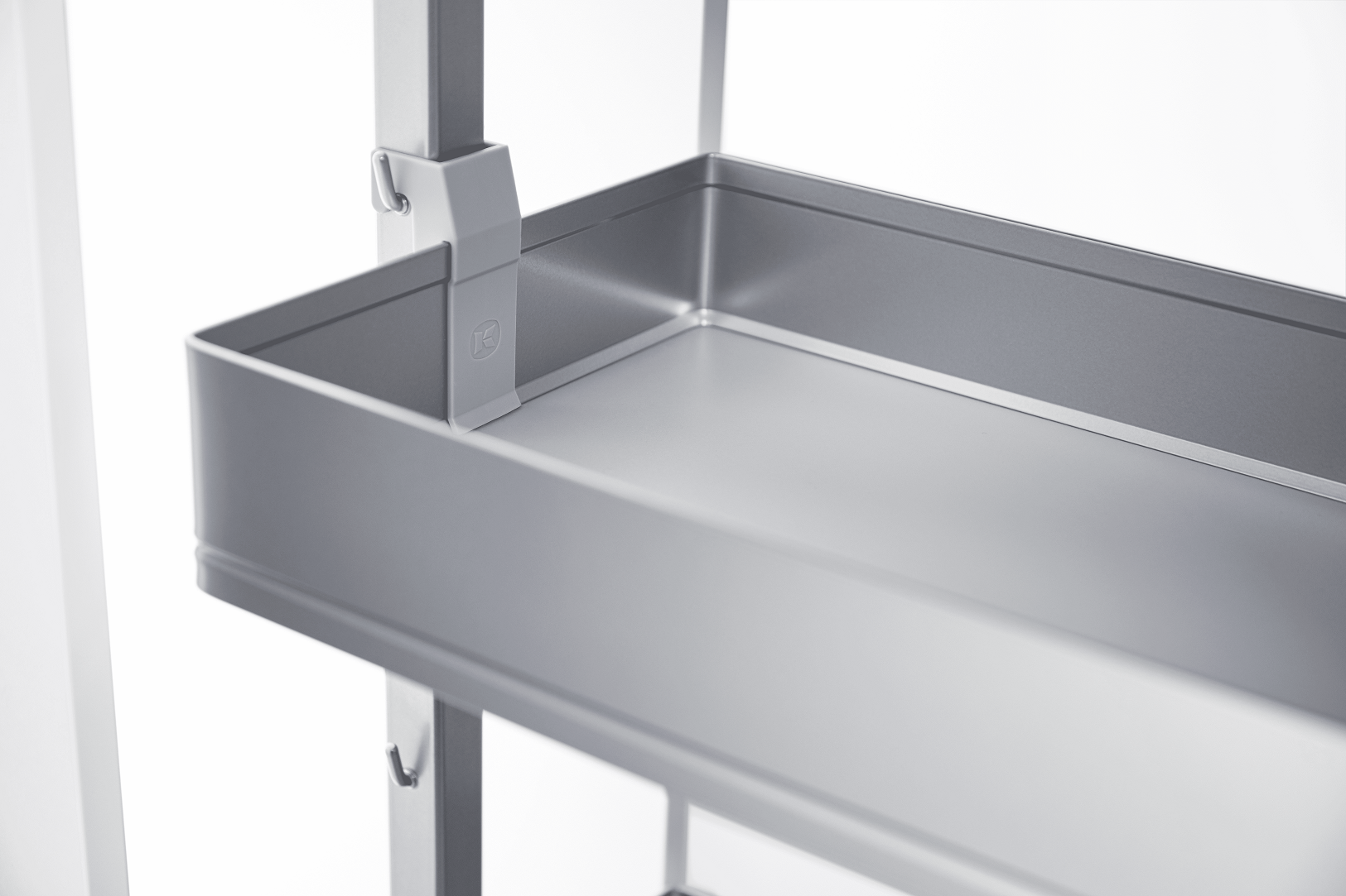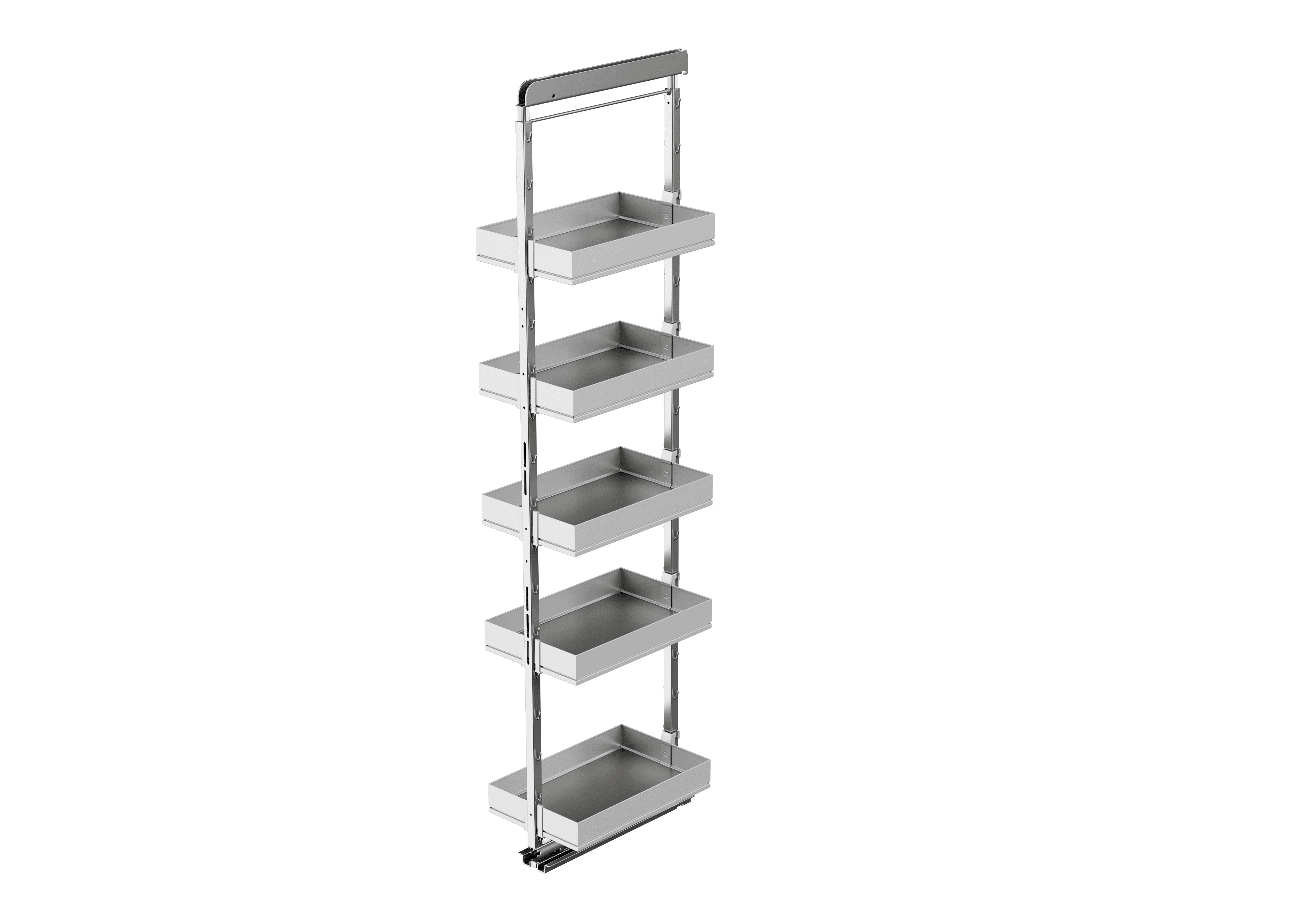 • Высокая нагрузка на механизм в 100 кг (по 18 кг на полку) позволяет организовать хранение большому количеству предметов, при этом даже при полной загрузке система выдвигается легко.