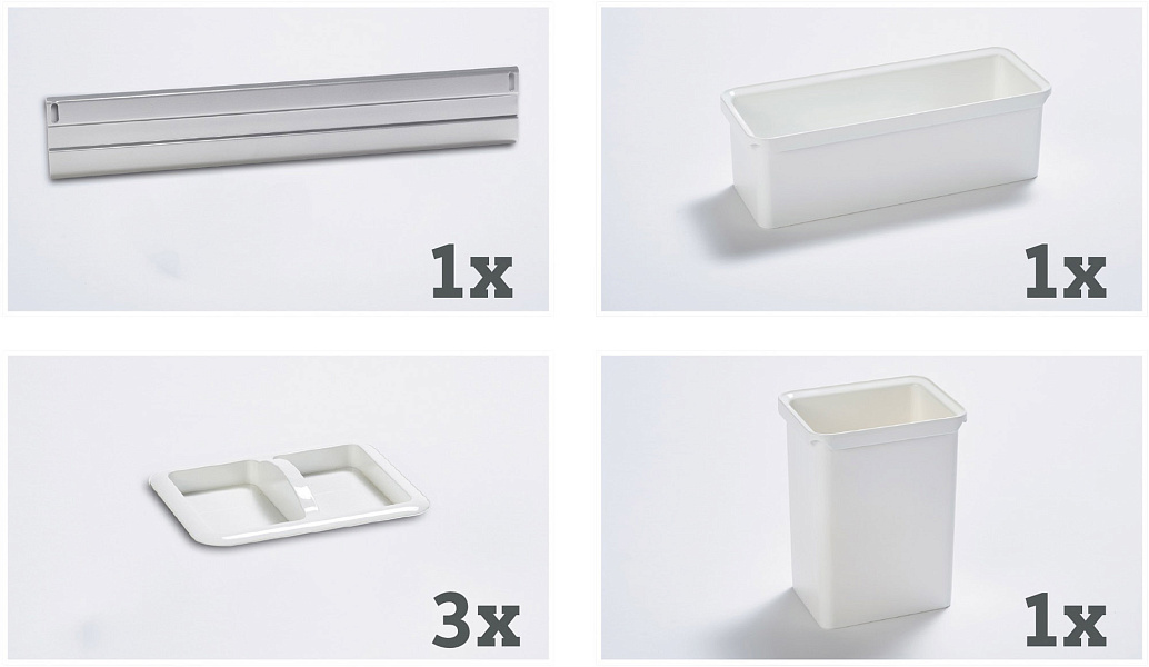 Набор емкостей №15 Юбокс, Тандем Сайд 600 мм цвет Титан / емкости Белые Kessebohmer | официальный магазин