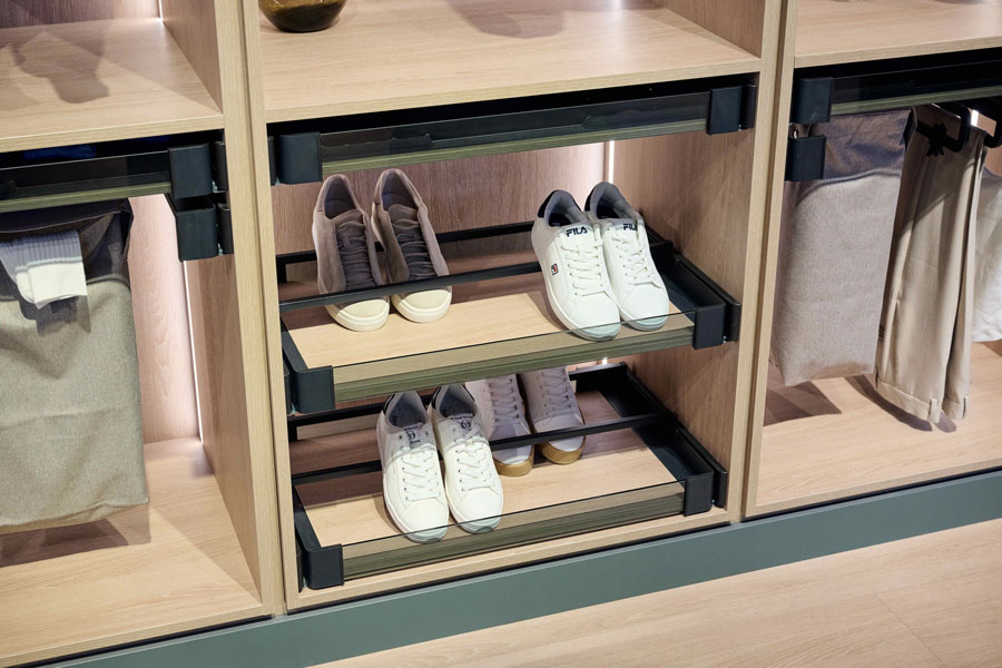 Расширение ассортимента коснулось и систем хранения для гардеробных Conero Kesseböhmer.